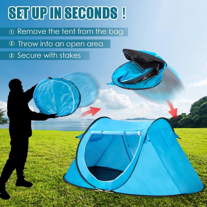 - EASY SETUP – Setup and tear down of this 2 person pop up tent are quick and easy. When you are finished with your trip, simply place the tent components back into the included carrying bag for easy storage with your other camping accessories.