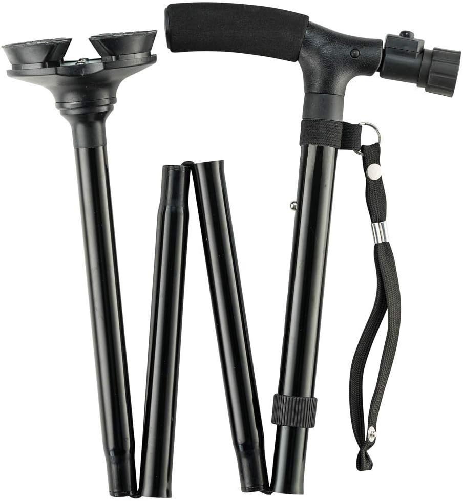 - Perfect Item: Height adjustable, foldable, portable, with LED Light, soft foam grip handle, slip-resistant rotatable pivoting quad base. The great classic walking cane make you easily walk any type of terrain indoor outdoor like park, in the rain, or snow, comfortable and safety. You can purchase our hiking cane with confidence, if you aren’t completely satisfied with folding cane, please feel free to contact us, we will try our best to satisfy you.