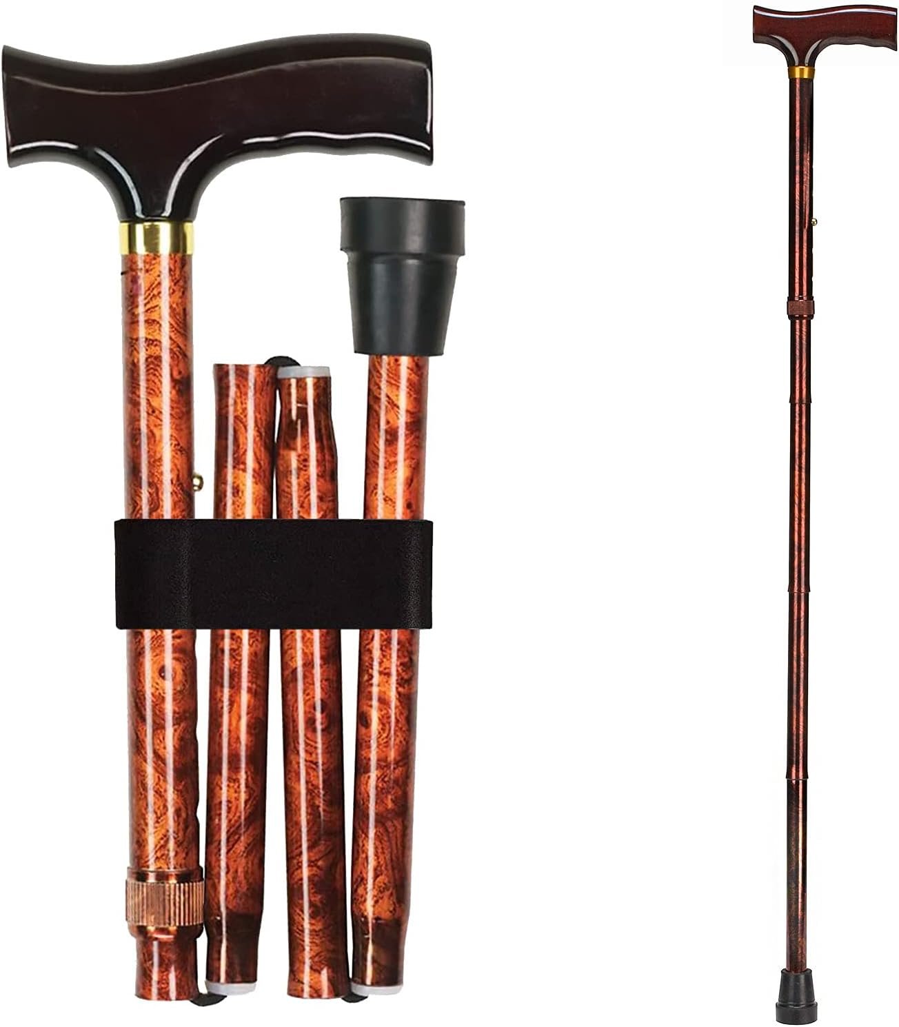 Sports Walking Cane or Stick, Foldable Cane for Men, Women, niors and Handicapped Adjusts from 33-37″ in 1 inch increments with Ergonomic Wood Handle,Supports up to 250 Pounds
