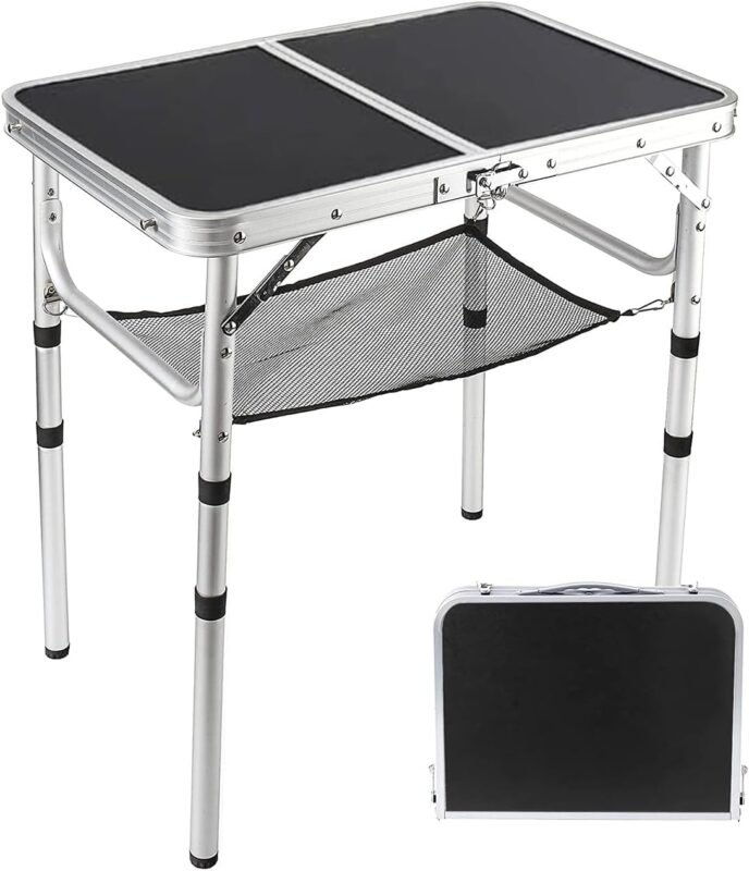 $69.99Small Folding Table 2 Foot, Portable Camping Table with Mesh Holders,Lightweight Aluminum Adjustable Height, with Carry Handle for Camping Picnic Indoor Outdoor, White 24 x 16 inch (Black